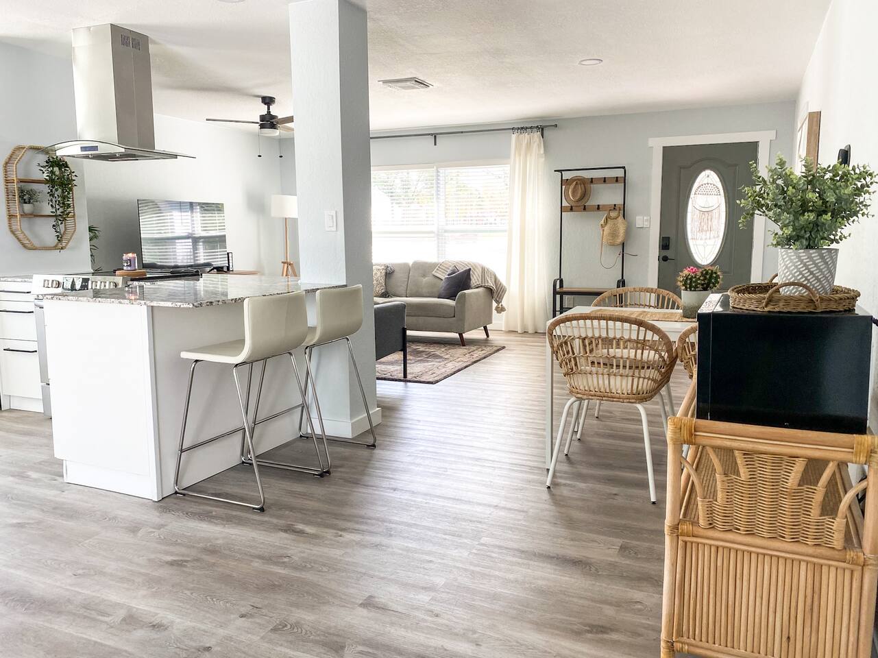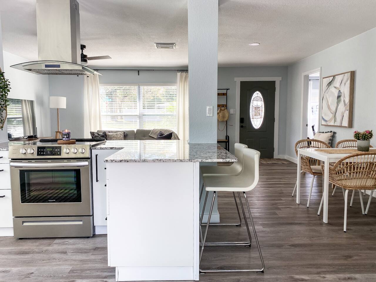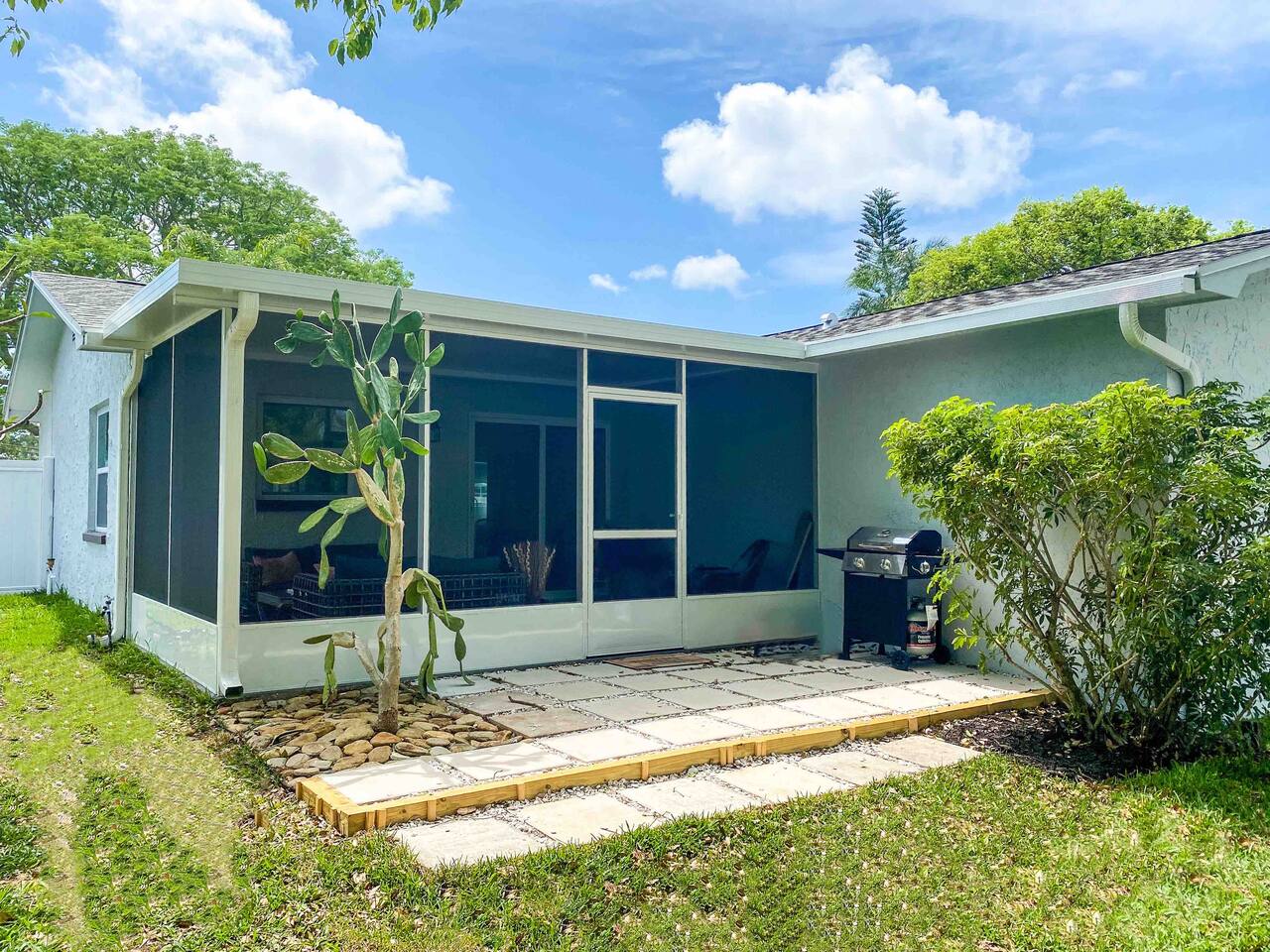 Beautifully updated, open concept, nice outdoor space. Close to downtown Dunedin and Clearwater Beach. Experience the ultimate in luxury and comfort in this stunning 3BR/2BA designer cottage, newly remodeled to create the perfect vacation getaway. Every detail has been carefully crafted to ensure an unforgettable stay, from the plush luxury bedding to the sleek gourmet kitchen and brand new screened-in lanai - perfect for sipping your morning coffee in style. Located just five minutes from downtown Dunedin, you'll have access to dozens of restaurants, boutique shops, the picturesque Pinellas trail, and stunning waterfront sunsets. Plus, you're only a short drive away from two of the most beautiful beaches in the area - Honeymoon Island and Caladesi Island. But don't miss out on world-famous Clearwater Beach, just five miles away and offering endless fun in the sun. After a day of exploring and adventure, return to your luxurious home away from home and relax in the comfortable, open-concept living space. Whether cooking up a storm in the gourmet kitchen or lounging in the designer living area, you'll feel right at home in this beautiful vacation retreat. Equipped with a full kitchen including toaster, coffee maker, pots and pans, dishwasher, fridge and outdoor grill. Dining table has a pull out expansion mechanism to provide seating for 6. Home has central air and ceiling fans. Great outdoor space including a brand new screened in lanai, sitting area and grill. Brand new luxury beds for a great nights sleep after your day of recreation. Smart TV and Wifi. Easy, one level living in this bright airy home. Sheets and towels are all included as well as the use of the washer and dryer. And, of course, we provide all the beach essentials like towels and chairs for your use while you are our guests. This is a smoke-free property, no pets and no parties are allowed.