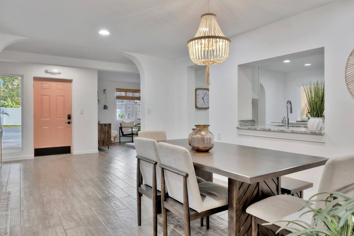 Welcome to your dream beach getaway as featured on the Magnolia Network. 7 mins from the white sand beaches, this fully renovated 3br/2ba HEATED pool home is a paradise for family and friends. Immerse yourself in the modern kitchen, luxury bathrooms, game room, and spaces for gathering. Sleep like royalty on the plush beds. Explore nearby attractions and restaurants or just lounge by the pool & hot tub. Don't miss out on this amazing vacation haven—book now for an unforgettable experience!