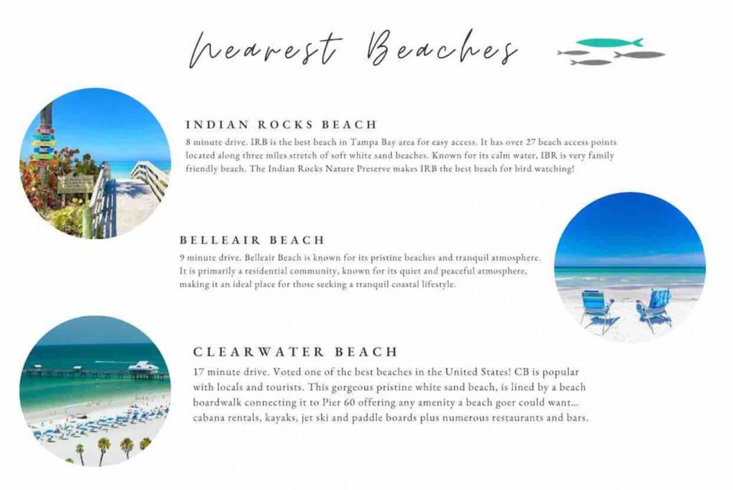 Nice quiet and spacious neighborhood. The Pinellas Trail, a 47-mile long bike trail, is just 700ft from the front door! (2 bikes included with home) Close to Belleair Bluffs, shopping and restaurants. 7 minutes to the world famous Gulf beaches. Popular Beaches: Indian Rocks, Clearwater and Belleair Beach. 10 min drive to Suncoast Jazz Festival: Nov 17-19th 2023