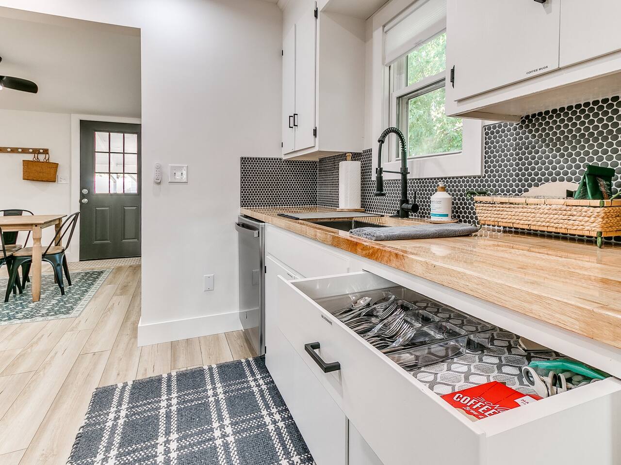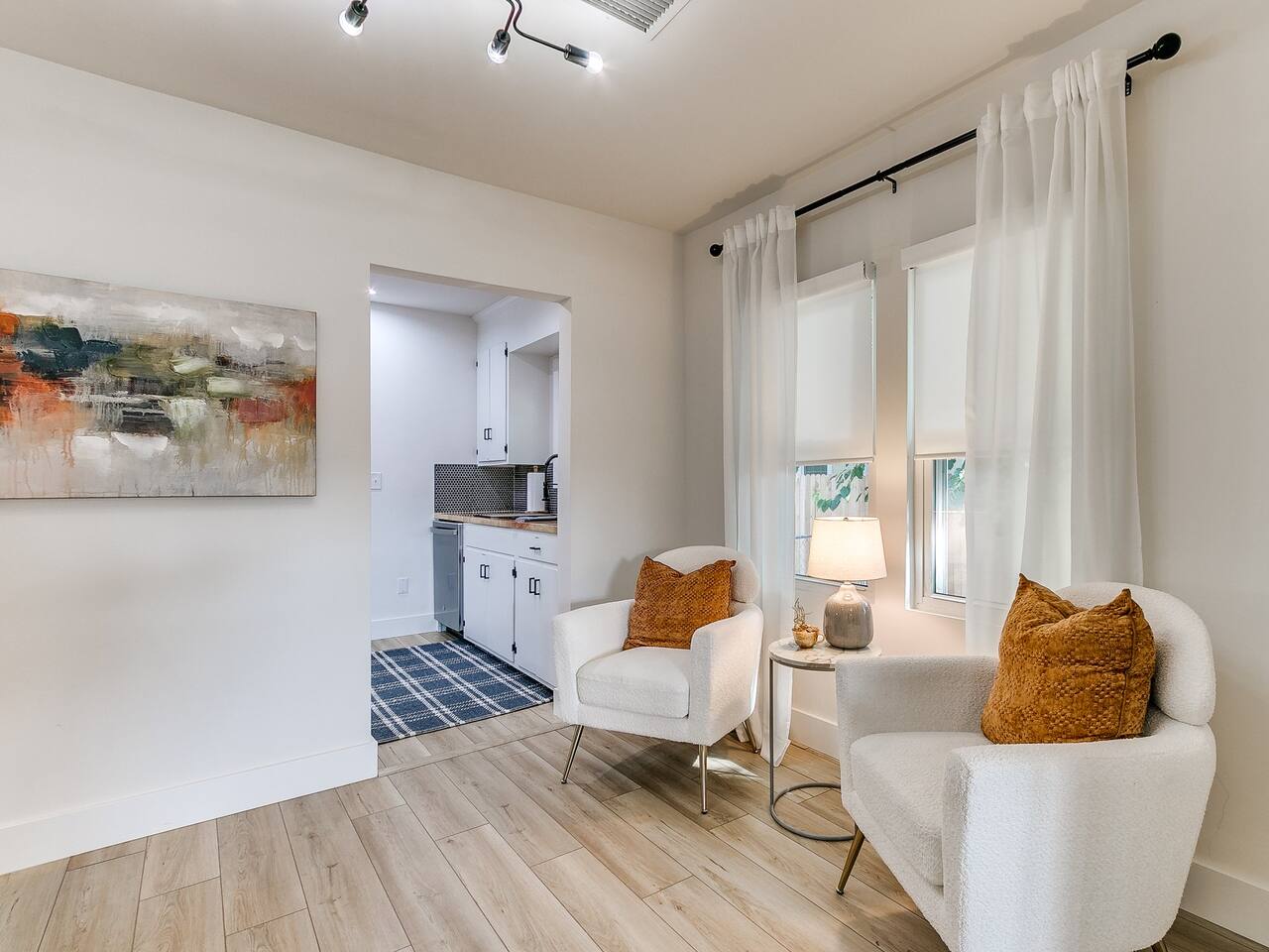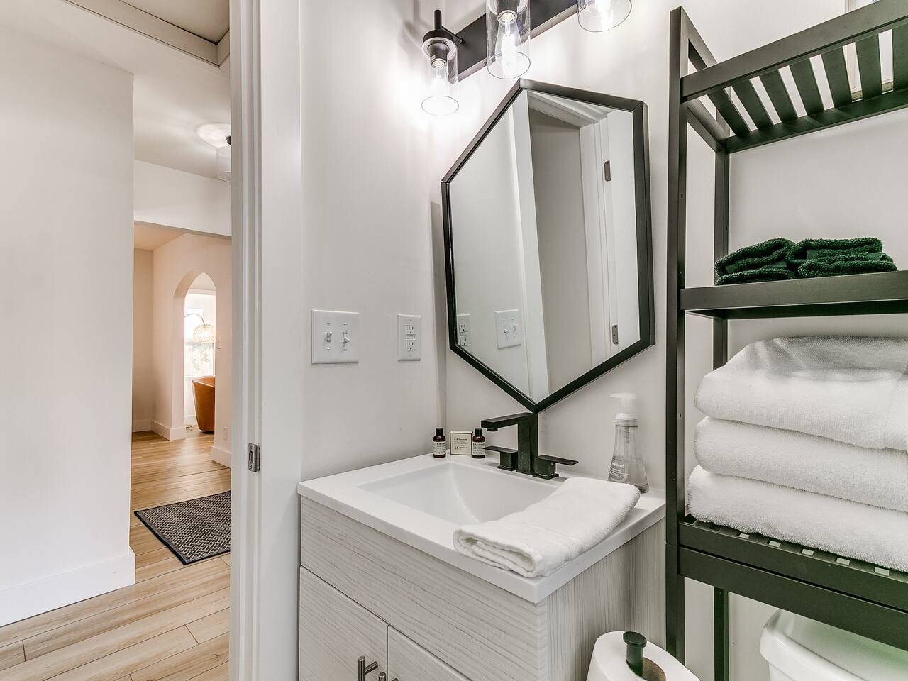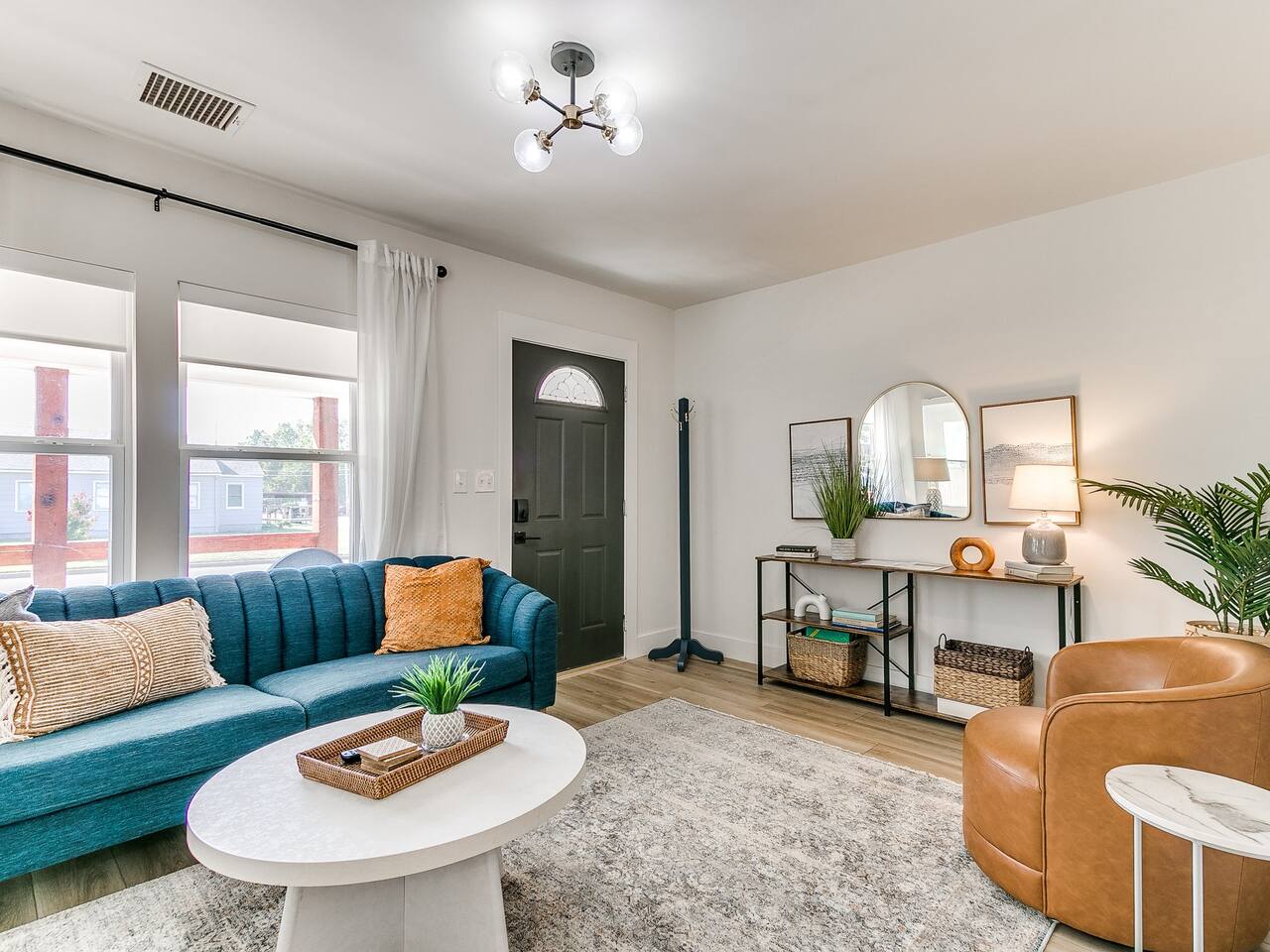 The Space: The Uptown Cottage is equipped with 3 bedrooms, 2 baths, dining area, a full kitchen with all the amenities and an outdoor front and back porch with a grill. Brand new central air system to keep you cool. The home has all brand-new furniture including super comfy beds for a great night sleep after your day of recreation. Smart TVs and high speed Wifi throughout the home. Easy, one level living in this bright airy home. Sheets and towels are all included as well as the use of the washer and dryer if needed. LIVING ROOM: Newly remodeled, bright and airy space with a contemporary design. The living room flows into another sitting area with separate working space and a desk if you are here on business. KITCHEN: Fully equipped kitchen with brand new appliances and plenty of workspace. Also a coffee bar area to brew the good stuff. Great place to make a meal or hang around together. DINING AREA: Dining table seats 6. The open floor plan provides easy access between our kitchen, living room and dining area. PRIMARY BEDROOM: To ensure your comfort, our home is outfitted with luxury mattresses, quality linens, and great pillows, all cleaned to the highest standards. Our primary bedroom has a queen size bed, dresser and plenty of space for storage as well as a smart TV for you. FULL BATH Updated and remodeled beautiful bathroom with tub/shower combo. All towels and amenities are selected with you in mind. QUEEN BEDROOM 1: Queen bedroom with high end cooling gel mattress, dresser and closet space provide our guests with a cozy and comfortable experience. QUEEN BEDROOM 2 On the rear side of the house, this bedroom is great for additional guests. High end bedding and plenty of storage for your stuff. HALF BATH: Another half bath with vanity. This can be used by any of the other guest and is conveniently located off the main section of the home. Quality towels and amenities provide. OUTDOOR AREA/BACKYARD: Our home offers outdoor space to enjoy. Our fenced-in yard boasts a covered patio with a seating area and a gas grill, and plenty of space for everyone.